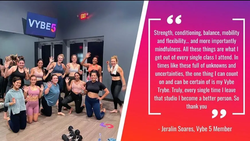 VYBE5 is an inclusive environment for all fitness levels! We embrace modifications and offer advancements for those who want the extra challenge.